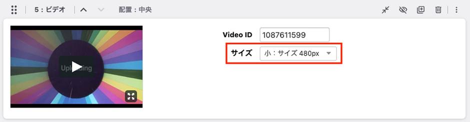 また、エントリーの編集画面でビデオユニットのサイズの指定が出来ます。