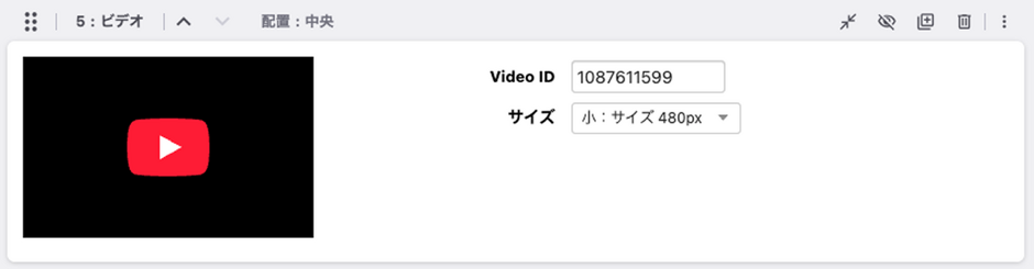 ビデオユニットではYouTubeやVimeoといった動画を埋め込むのためのユニットです。テンプレートをカスタマイズすることで、下の図のようにVideo IDを入力するとそれに対応する動画を表示することができます。
