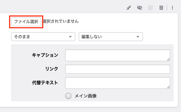 そのほか、項目として「削除」があり、選択して保存すると該当する画像ユニットが削除されます。ユニット右上の削除ボタンと同じ動作となります。