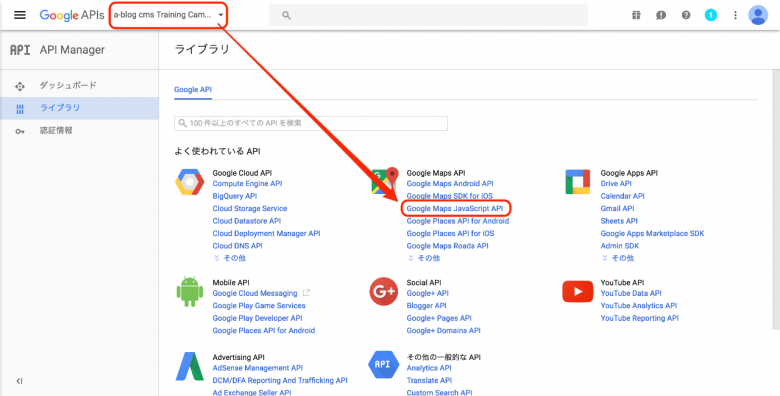 a-blog cms の管理画面に登録するための Google Maps API Key を取得します。