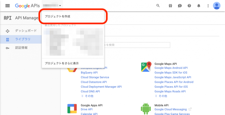 Google API Console にアクセスし、「新しいプロジェクトを作成」リンクをクリックしてプロジェクトを作成します。
