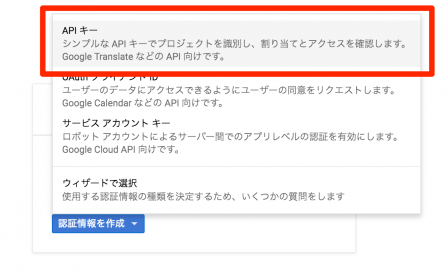 ポップアップで認証情報の種類が表示されます。「APIキー」を選択します。
