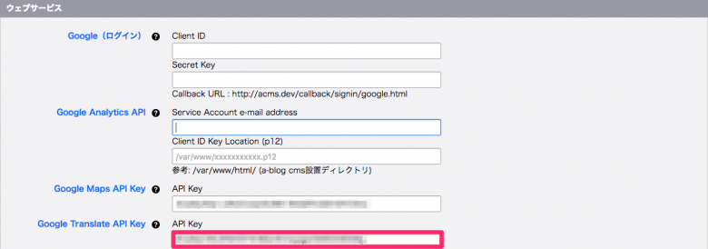 管理画面 > コンフィグ > プロパティ設定 にて先ほど覚えておいたAPI Keyを入力します。これで下準備は完了です。