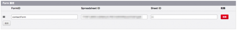 またこの管理ページ内でa-blog cmsのFormIDに対して書き込みしたいSpreadsheetのIDを指定する必要があります。 Spreadsheet IDとSheet IDは、開いているSpreadSheetのURLから調べることができます。