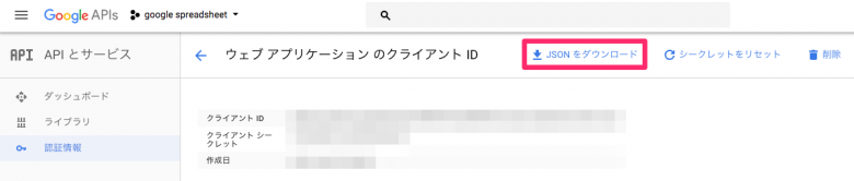 その後、クライアントIDなどの情報が記述されたJSONファイルをダウンロードしましょう。その後、ダウンロードしたJSONファイルをサーバーにアップロードします。ドキュメントルート以下にアップロードをするとブラウザからアクセスできてしまいますので、ドキュメントルートより上の階層にアップロードするのが望ましいです。