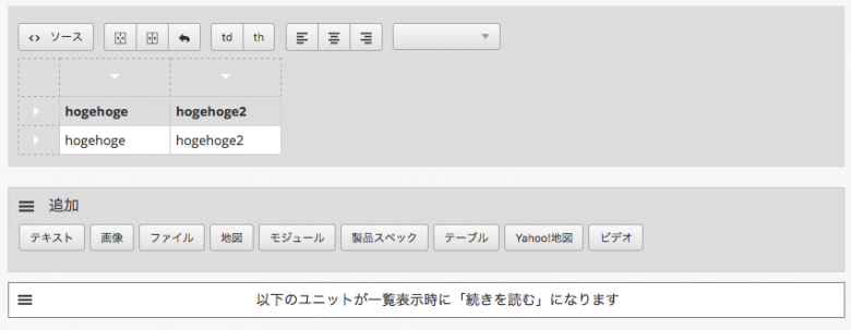{table}[raw]上のようにunitをincludeしている場所の下に{table}[raw] を追加してください。 これでエントリーのカスタムフィールドで登録したテーブルをエントリーで表示できるようになりました。