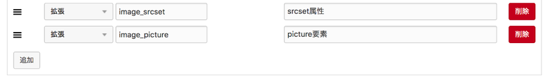 これで、下準備ができたので、srcset属性を追加したみたいに拡張ユニットを設定していきましょう。