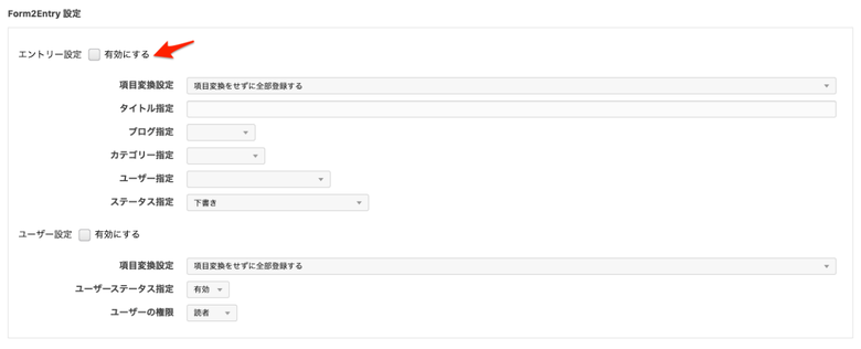 - 使用するフォームIDでForm2Entryを有効化する
