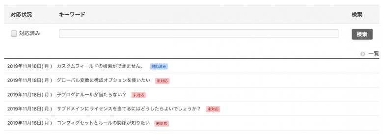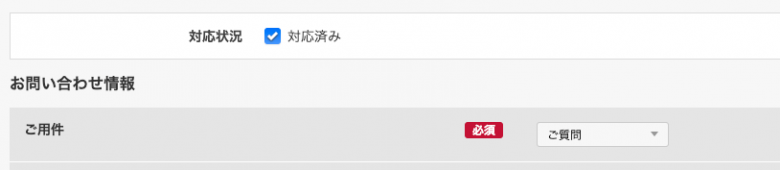 以下のようにエントリーのカスタムフィールド を「対応済み」にチェックを入れると、一覧ページのラベルに「対応済み」と表示されます。