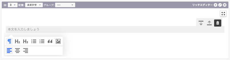 また、ブロックベースの考え方でできているため、見出しと本文を入れ替えたり画像と本文を入れ替えたり、順番の制御が容易に行えます。