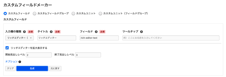 生成されたコードを各種カスタムフィールドの設置したい箇所に貼り付け、使用してください。