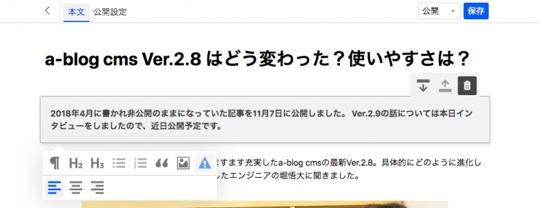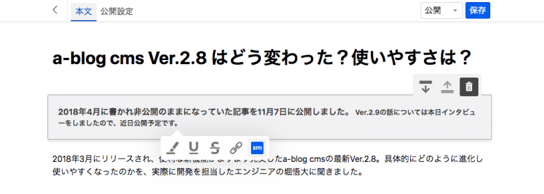 SmartBlock とは Ver.2.11より、a-blog cmsに新しく追加される予定のブロックベースのエディターです。