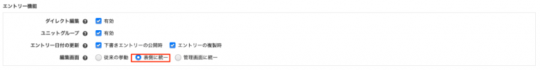 あとは、管理画面>コンフィグ>編集設定の順にページを移動し、エントリーの編集画面の設定を表側で統一すれば準備完了です!