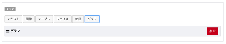 今回のグラフであれば、以下のようにグラフ名、サイズ、配置の設定と、グループでラベル・色・値を複数設定しグラフ表示に必要な情報を全てユニット内に登録できるような入力欄を実装します。
