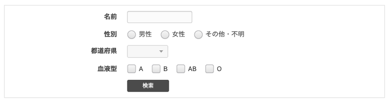 ポイントとしては、検索結果を表示させるには Field_Search モジュール を利用すること。チェックボックスの条件については、配列としてマークアップする必要がある。 name="blood" ではなく name="blood[]" と書き、blood:loop ブロックを用意し、複数件データがあれば複数件のタグを生成するように実装すること。