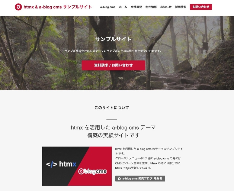 a-blog cms の標準的なテーマである site テーマを利用し、出来るだけ htmx で Ajax でページを遷移できるように実装したテーマの紹介も行いました。