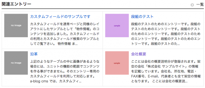 紐づけられたエントリーはテンプレートをカスタマイズすることで下の図のように表示することが可能です。